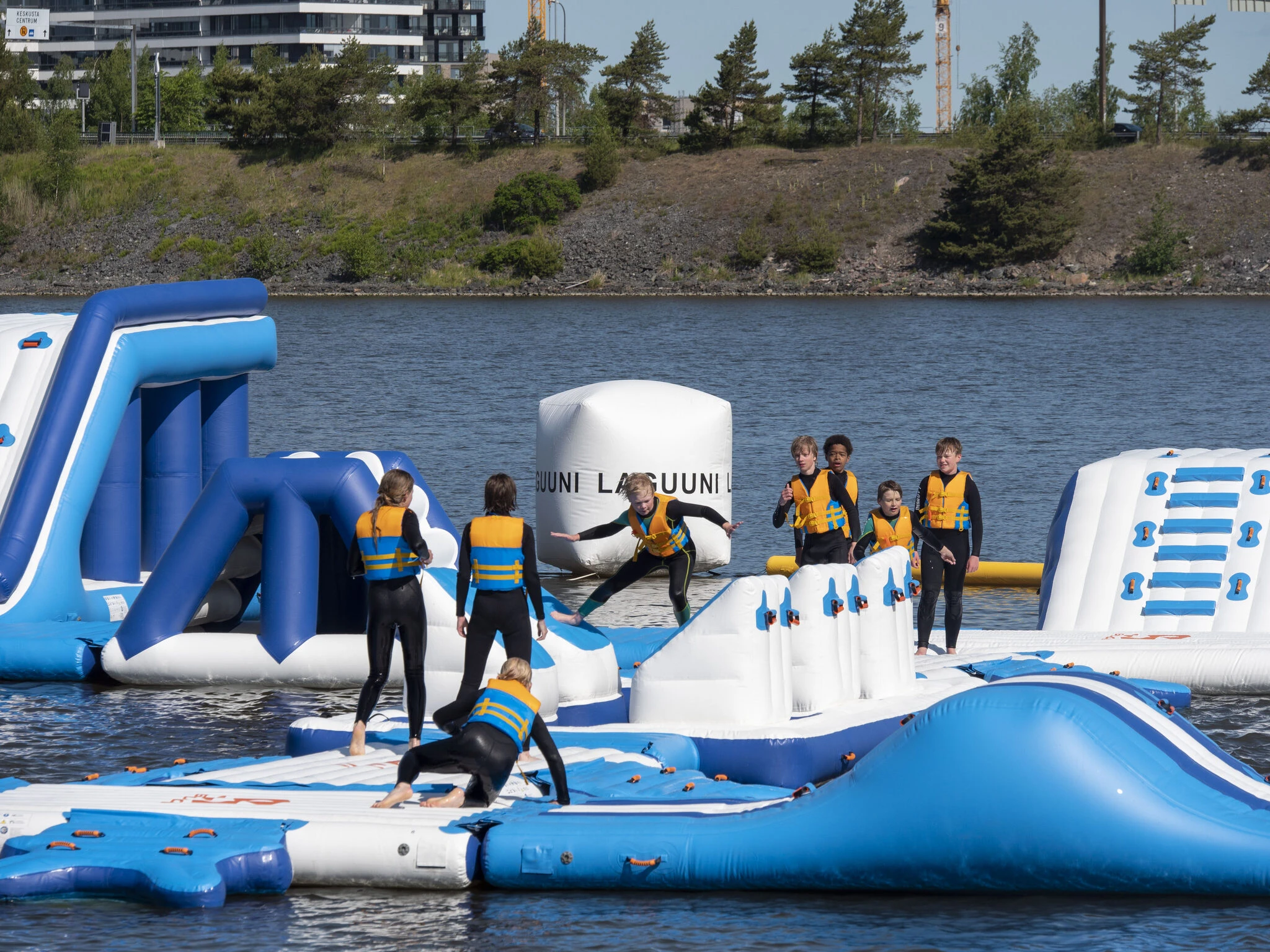 Laguunin vesipuisto Mustikkamaalla kutsuu kaikkia uimataitoisia! Vesipuistossa temmeltäminen on hauskaa puuhaa!