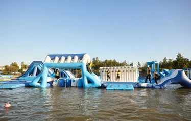 Vesipuistossa temmeltäminen on hauskaa puuhaa kaikenikäisille uimataitoisille. Rata on suunniteltu moneen tarkoitukseen ja siellä voit esimerkiksi kisailla kavereiden kanssa, roikkua tarzan-liaanilla, laskea jättiliukumäestä, hyppiä vesitrampoliinilla tai vaikkapa vaan nauttia monipuolisista esteistä ja radan antimista.